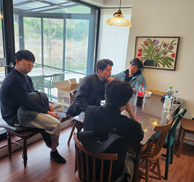 (옹기종기 모여서 다 같이 이야기 나누는 미동 직원들)